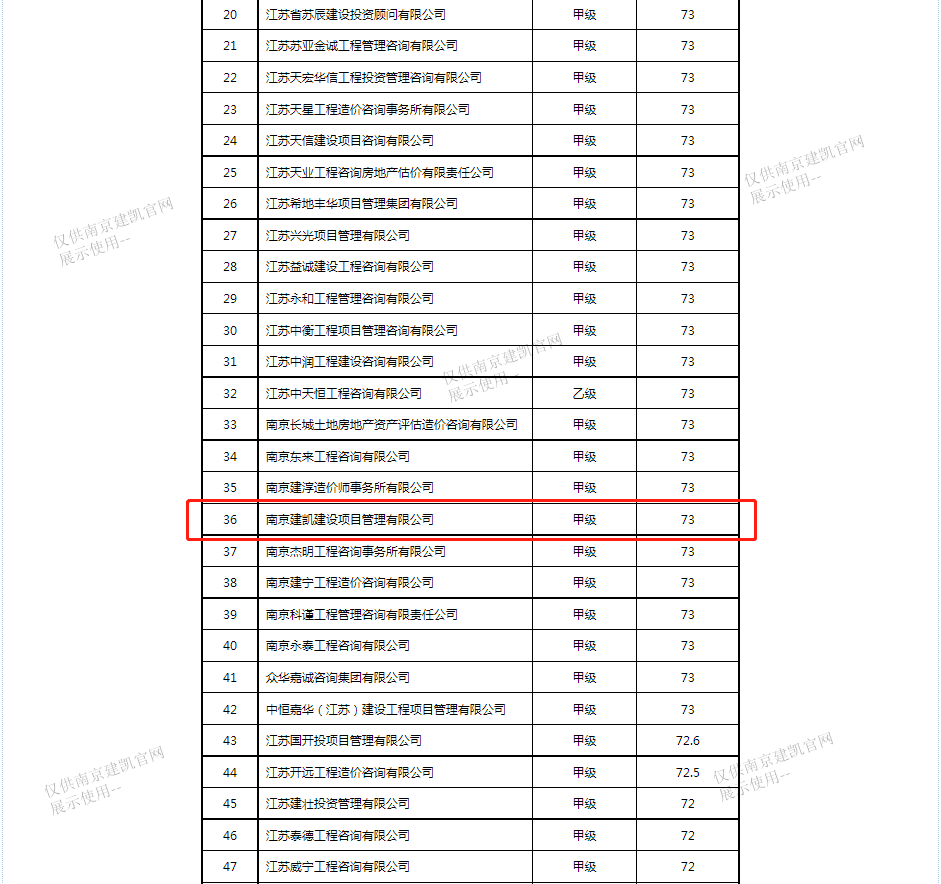 恭喜我司入選“南京市2023年一季度工程造價咨詢企業(yè)信用分值排名前20%企業(yè)名單”