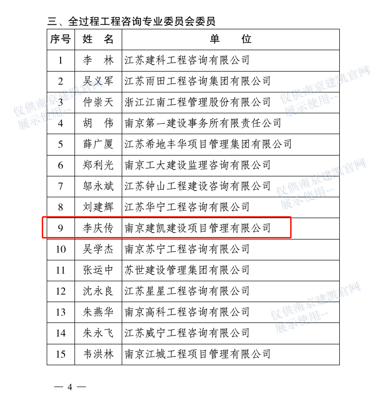 恭喜我司李慶傳同志入選“江蘇省建設(shè)監(jiān)理與招投標(biāo)協(xié)會(huì)全過程工作咨詢專業(yè)委員會(huì)組成人員名單”