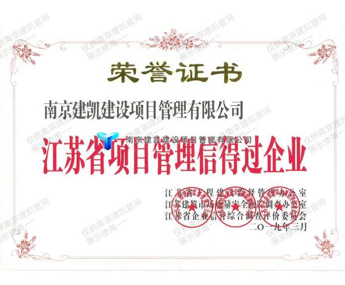 江蘇省項(xiàng)目管理信得過(guò)企業(yè)